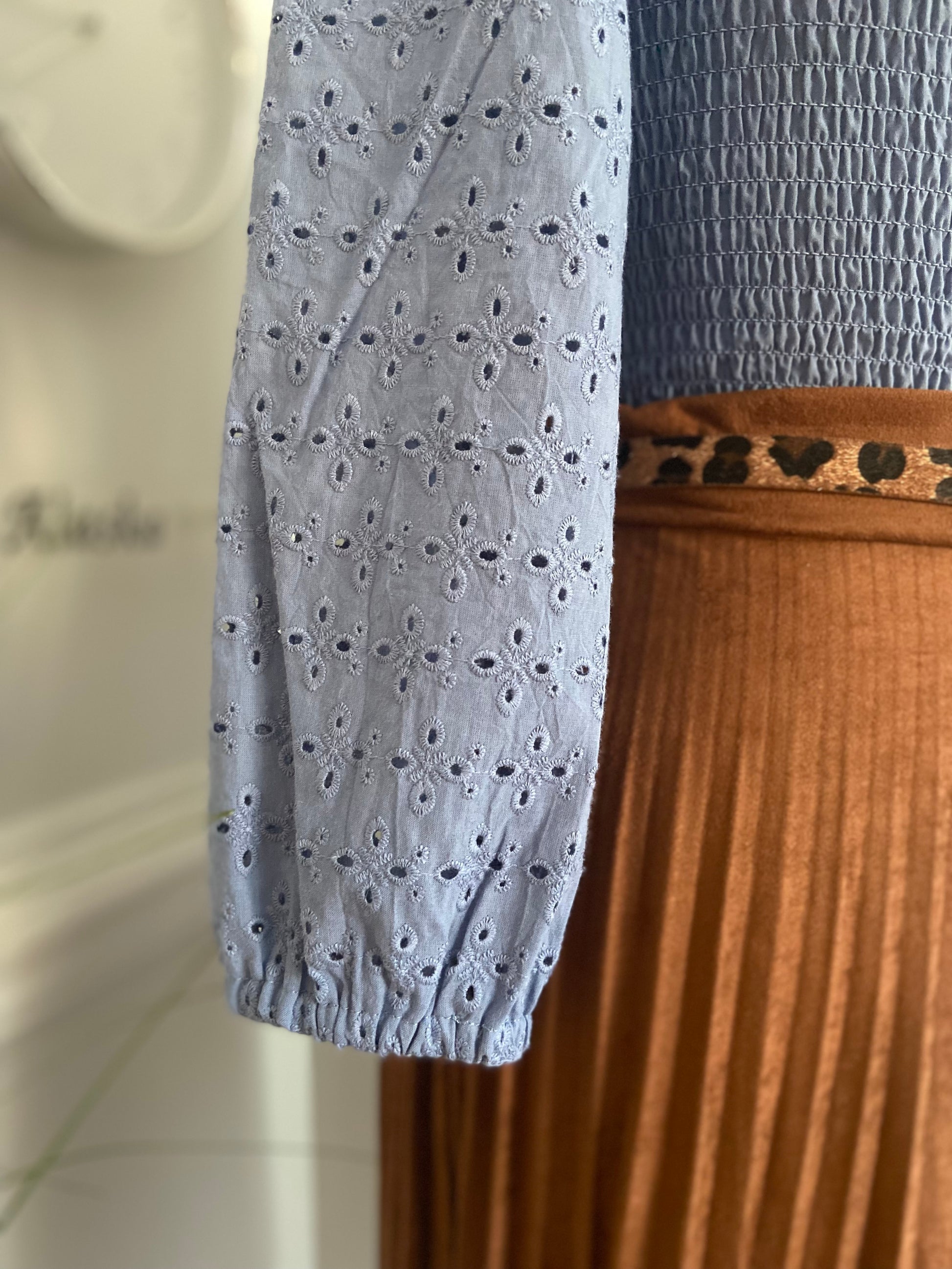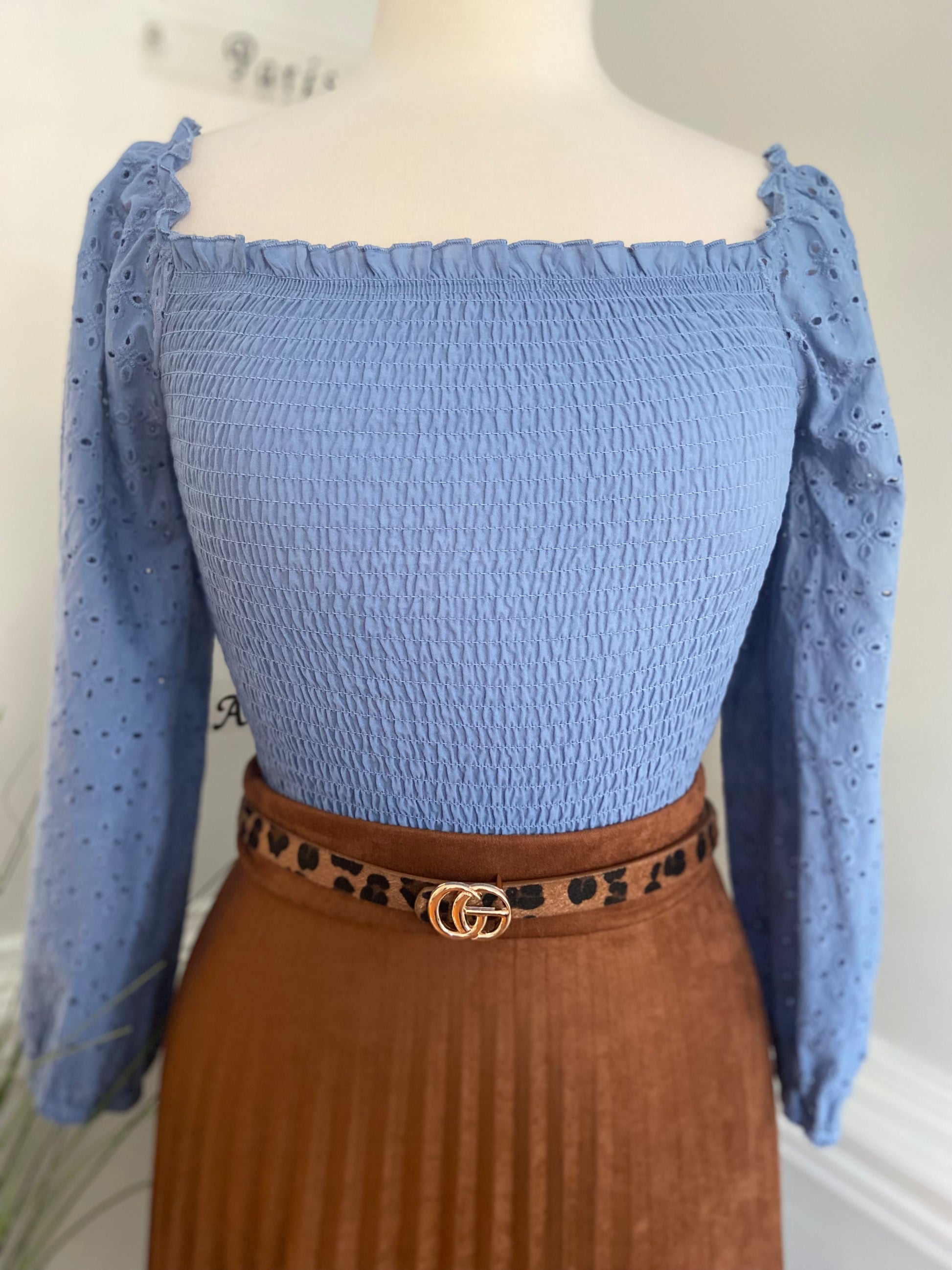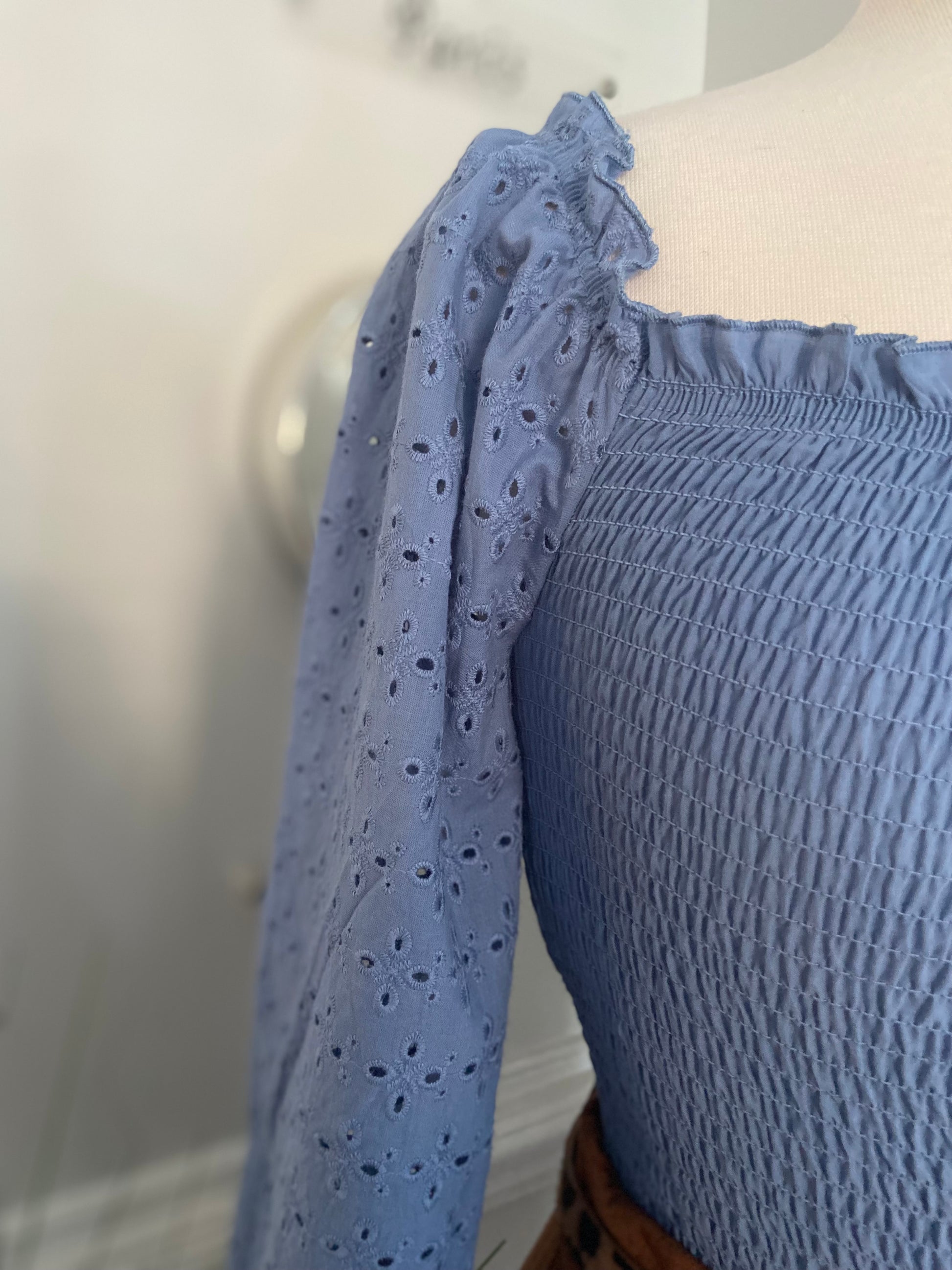This smocked crop top is perfect for spring and summer season. You can wear it with high waist skirts or jeans.