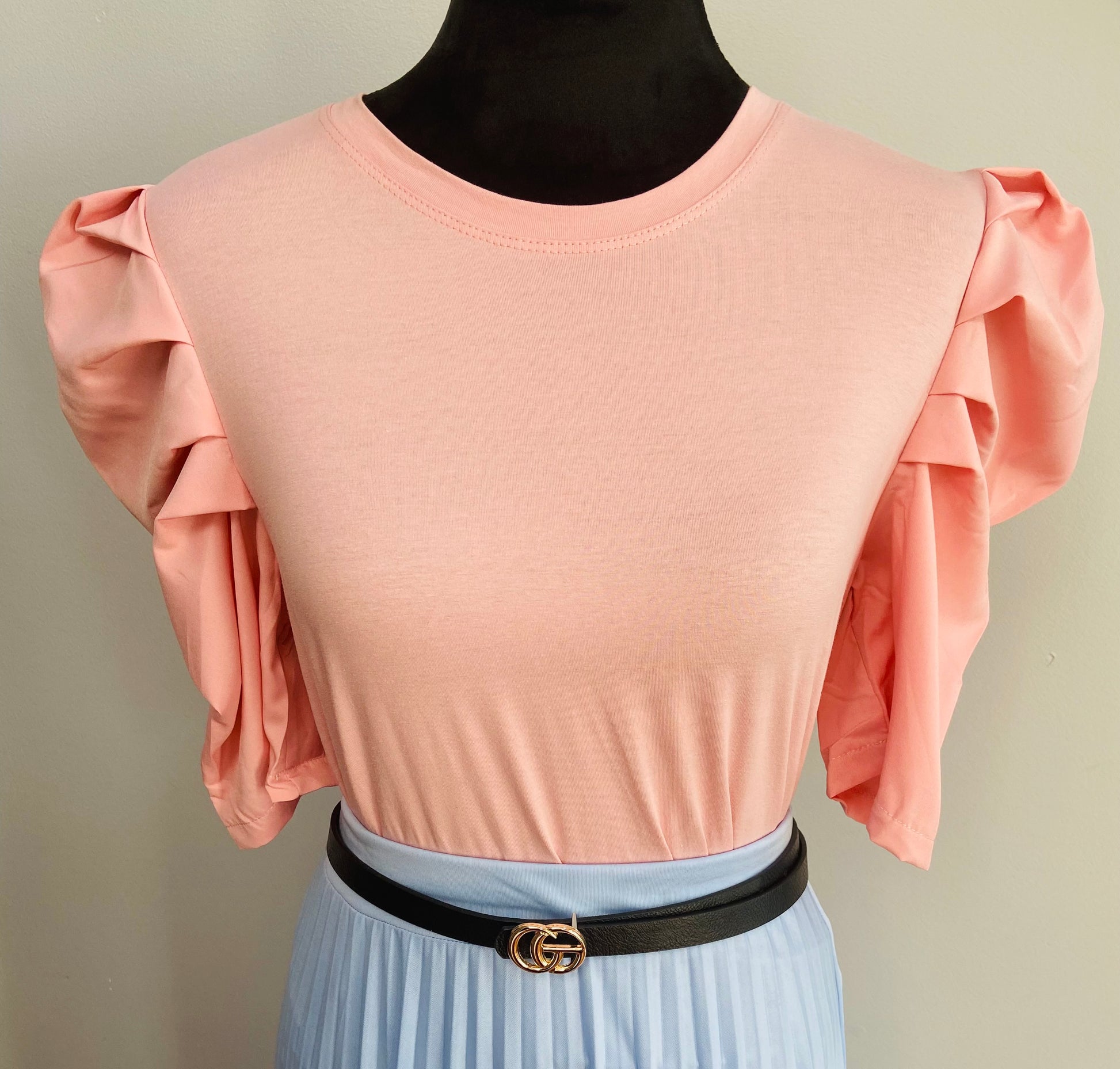 This blush ruffle sleeve classy top is the perfect staple piece to have in your wardrobe. It can be styled with so many different outfits.