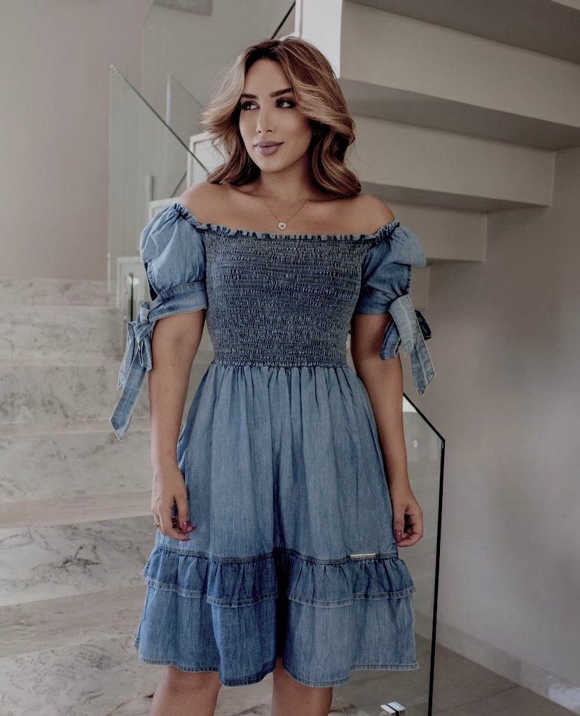 Girly Smocked Denim Dress